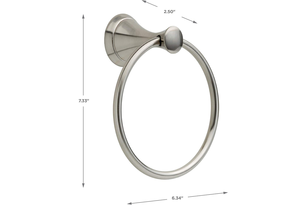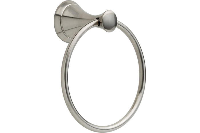 Delta's Carlise towel ring Satin Nickel Finish.