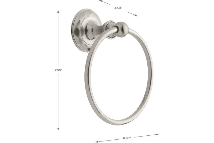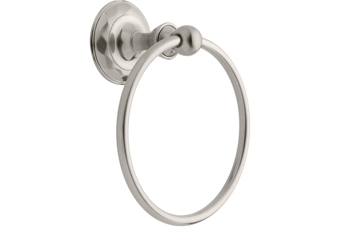 Delta's Pirouette towel ring Satin Nickel Finish.